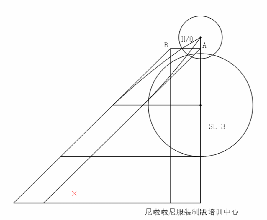 第二步:確定斜裁基點A,確定斜裁基點B